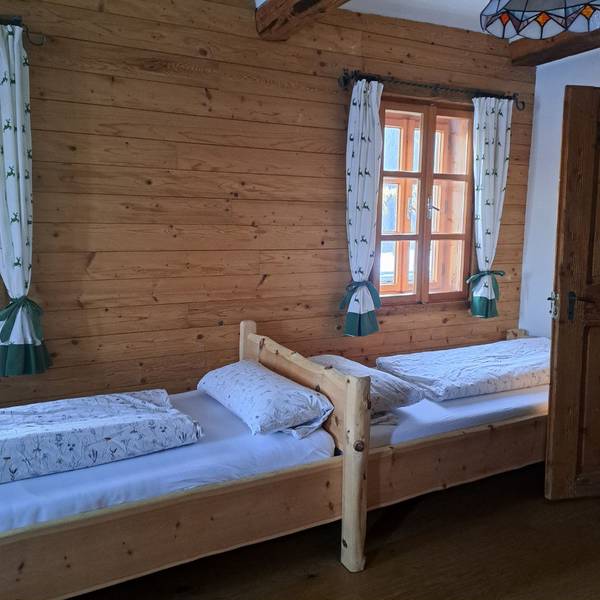 Für größere Gruppen besteht auch die Möglichkeit das Bauernhaus als Ganzes zu mieten, die Stiege im Inneren wurde erhalten,