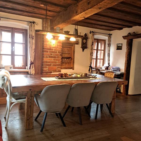 Uns war es wichtig den Charakter dieses alten Bauernhauses zu erhalten. Die Räumlichkeiten im Erdgeschoß sind originalgetreu - die originalen Wände,